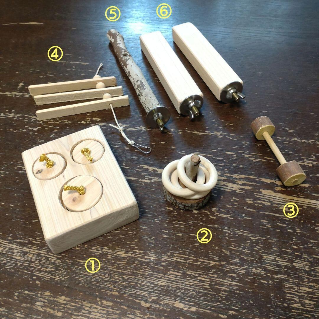 大切な鳥さんたちに遊んで貰えるよう複数のおもちゃとおもちゃをセットにしました。