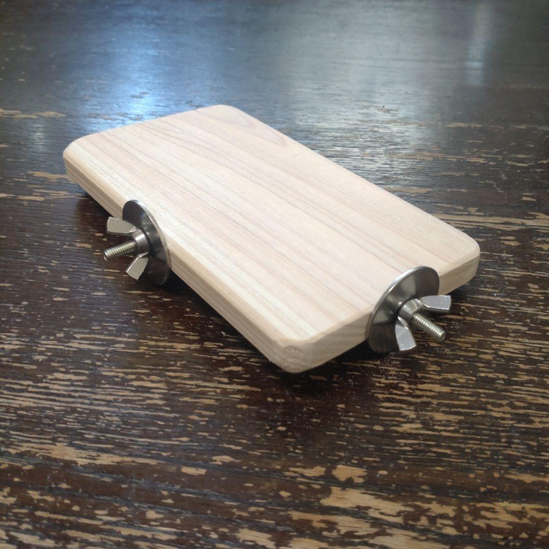 大人気!檜の四角い止まり木をゲージに留めやすいようにしてみました