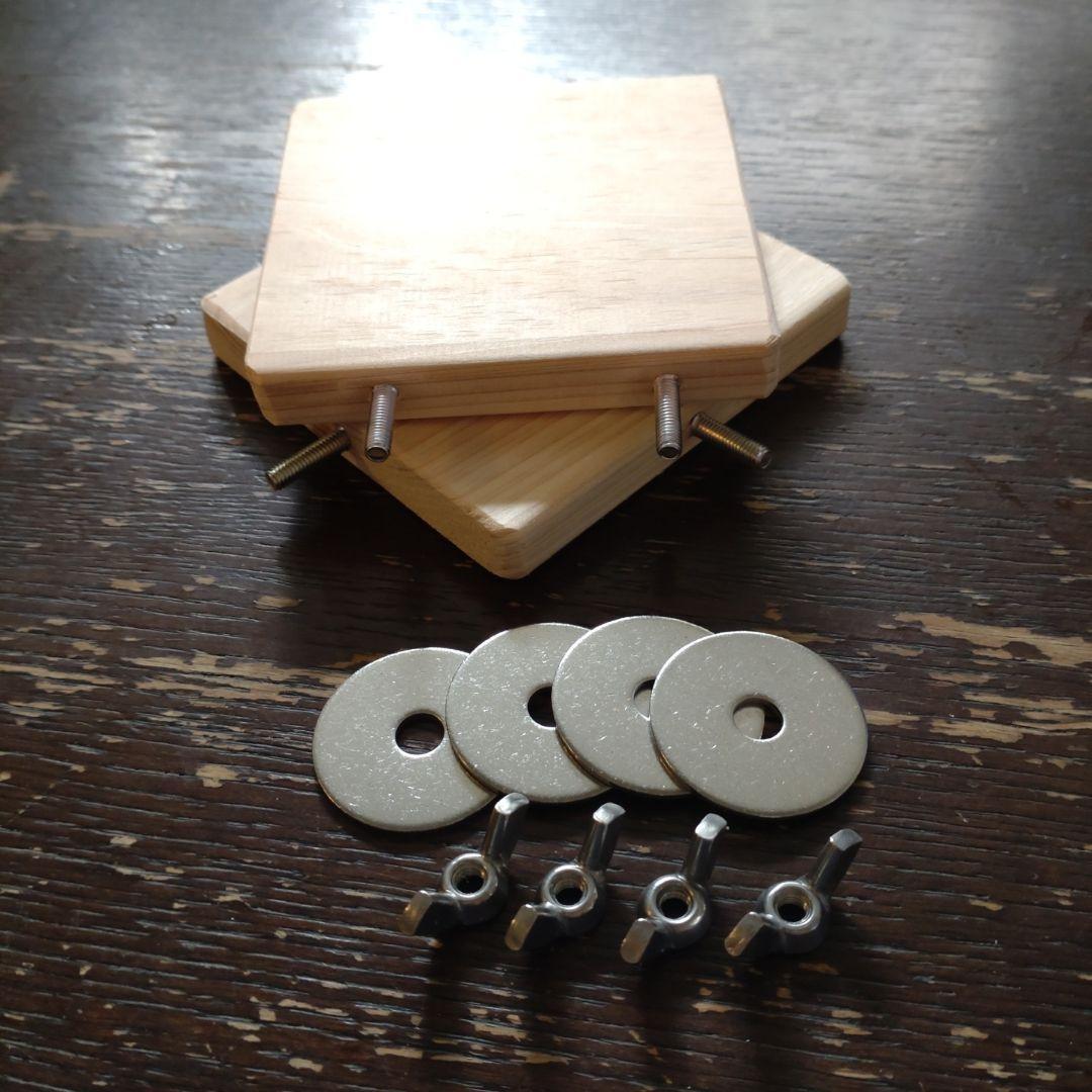 いつもの改良版で蝶ネジからボルト式に変えて、女性でも締めやすいものになっています