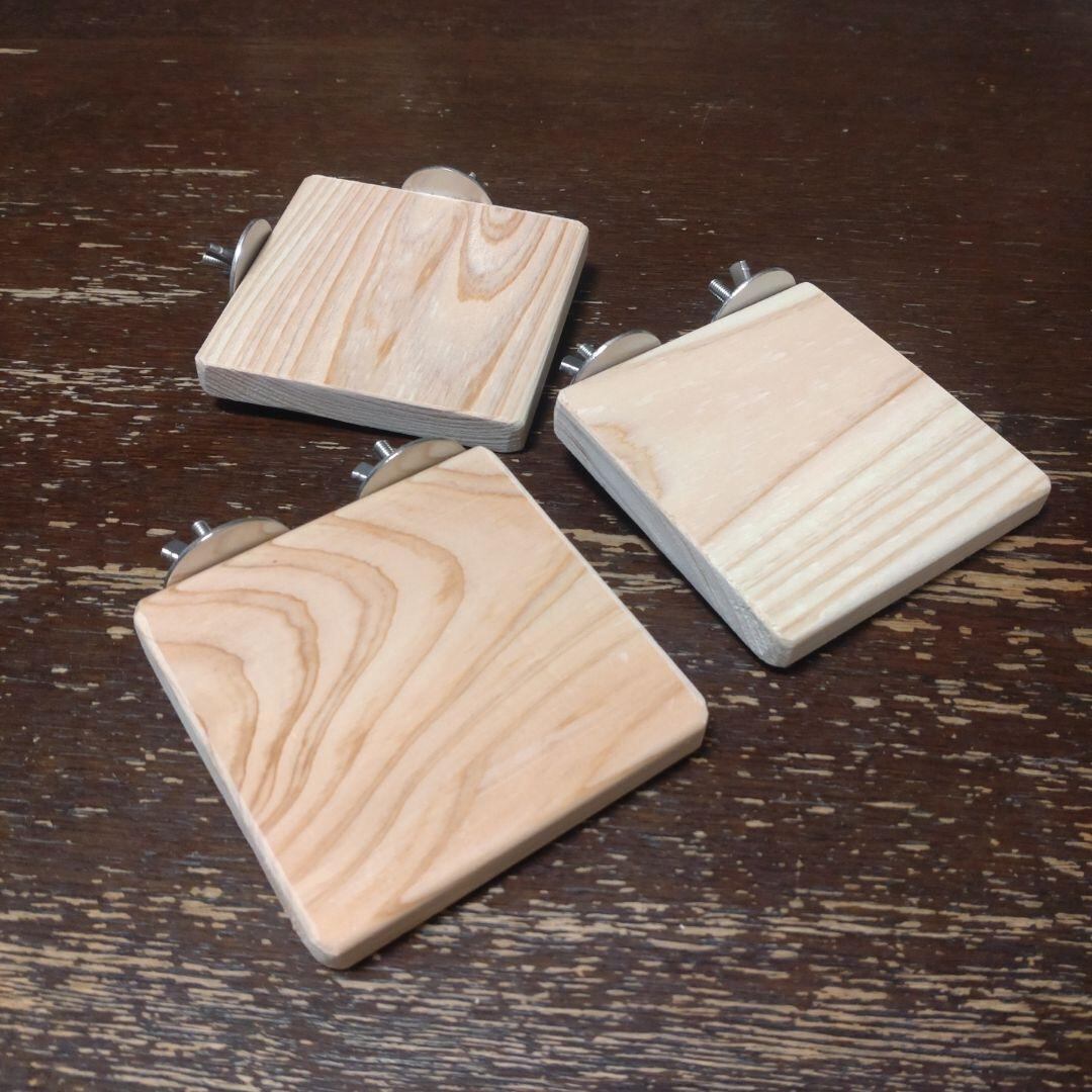 大人気!檜の四角い止まり木をゲージに留めやすいようにしてみました