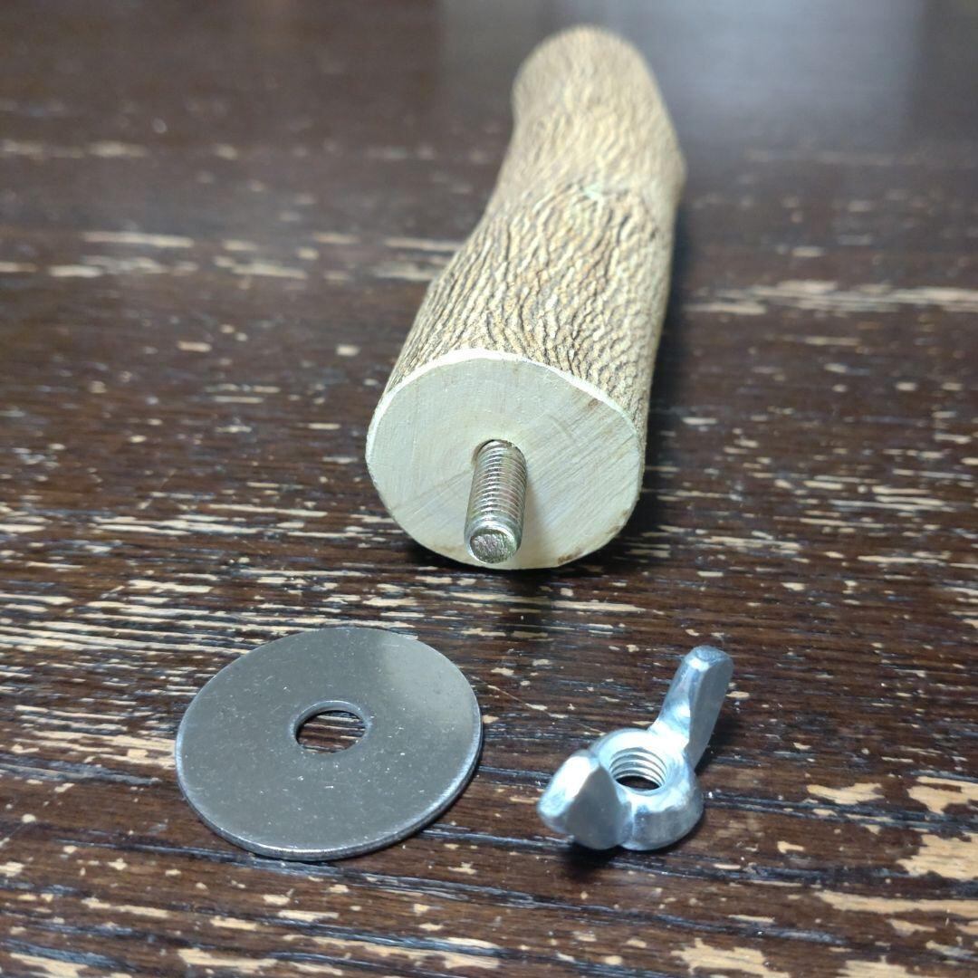 庭木のカラタチを伐採した枝を使い、止まり木で制作しています。